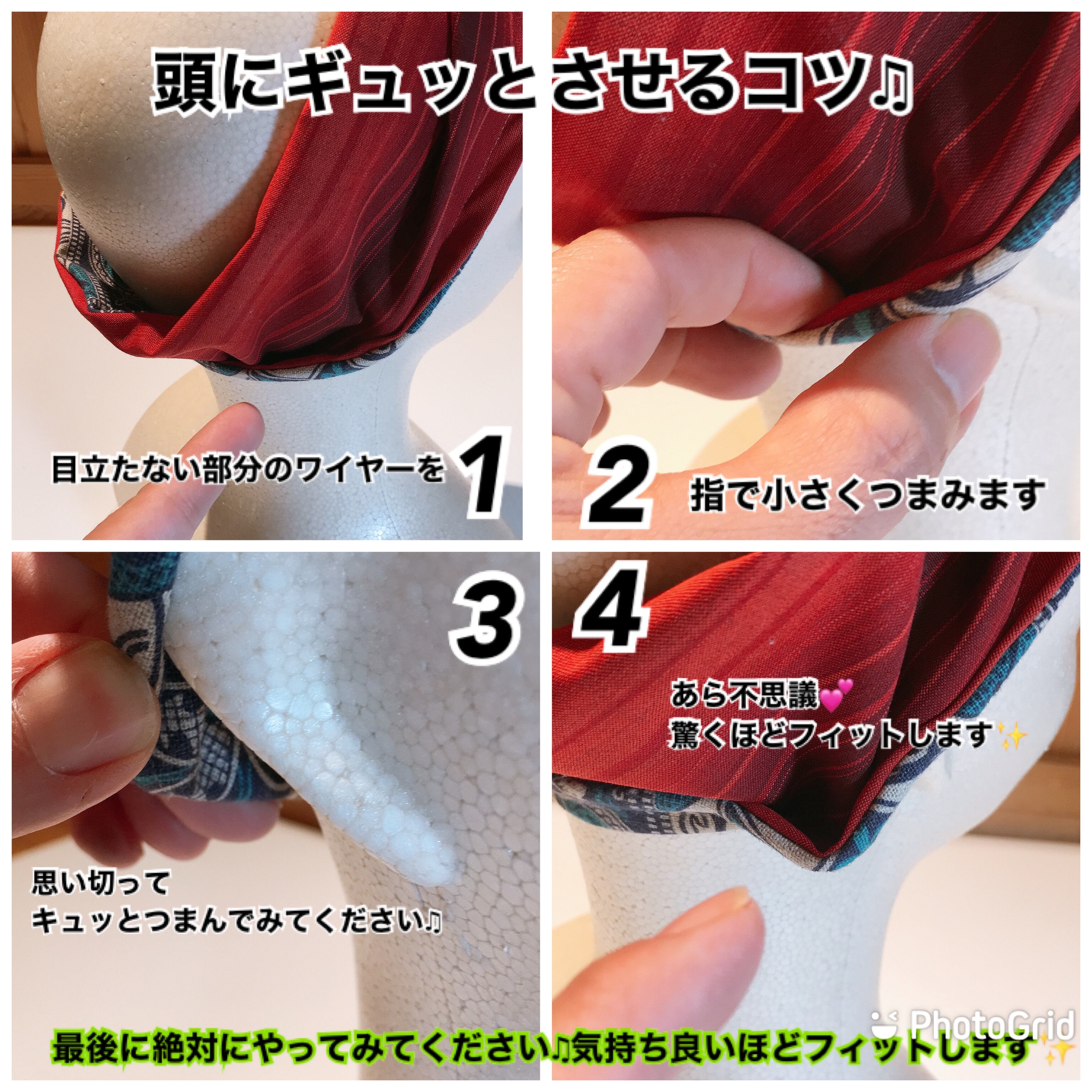 ※写真のマネキンの頭位はかなり小さいですので、あくまで巻き方や見せ方の参考程度にして下さい。