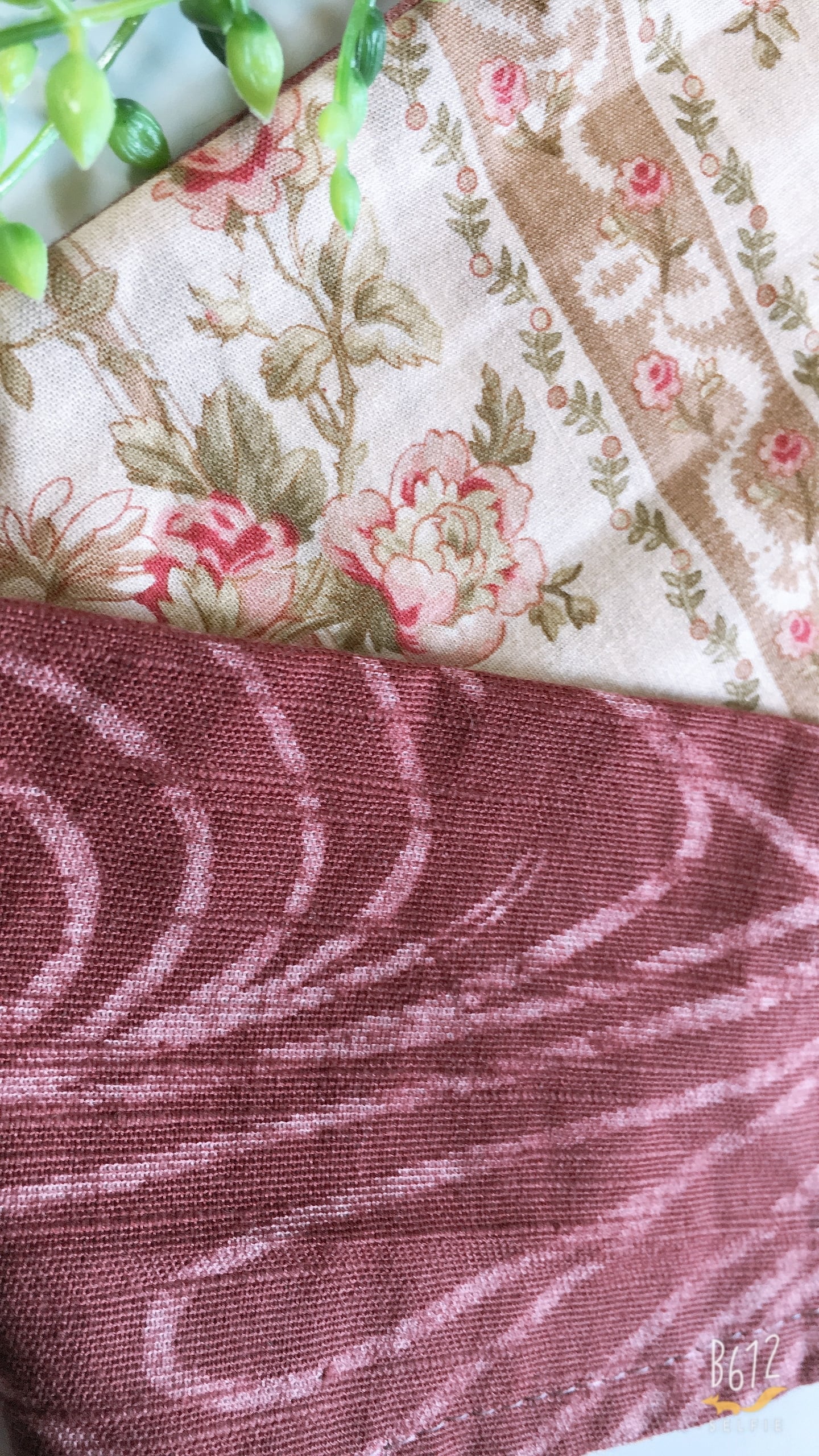 深いアイボリーは、くすんだように見えますが、そこに描かれたバラ柄でアンティークな印象のデザインになっています。組み合わせの、着物生地とコラボすると、あら不思議・・洋風和風が見事にマッチしています♪