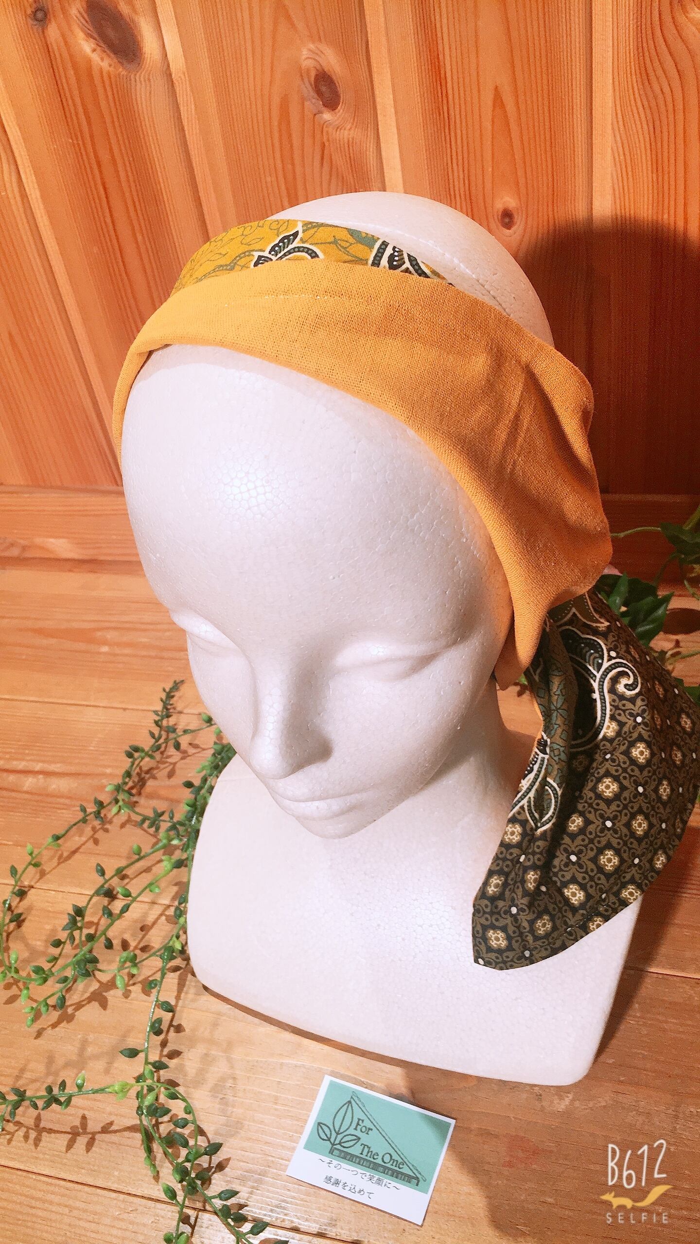 アジアンテイストのなんとも不思議な柄と、カラシ色は、見ての通り相性抜群!!