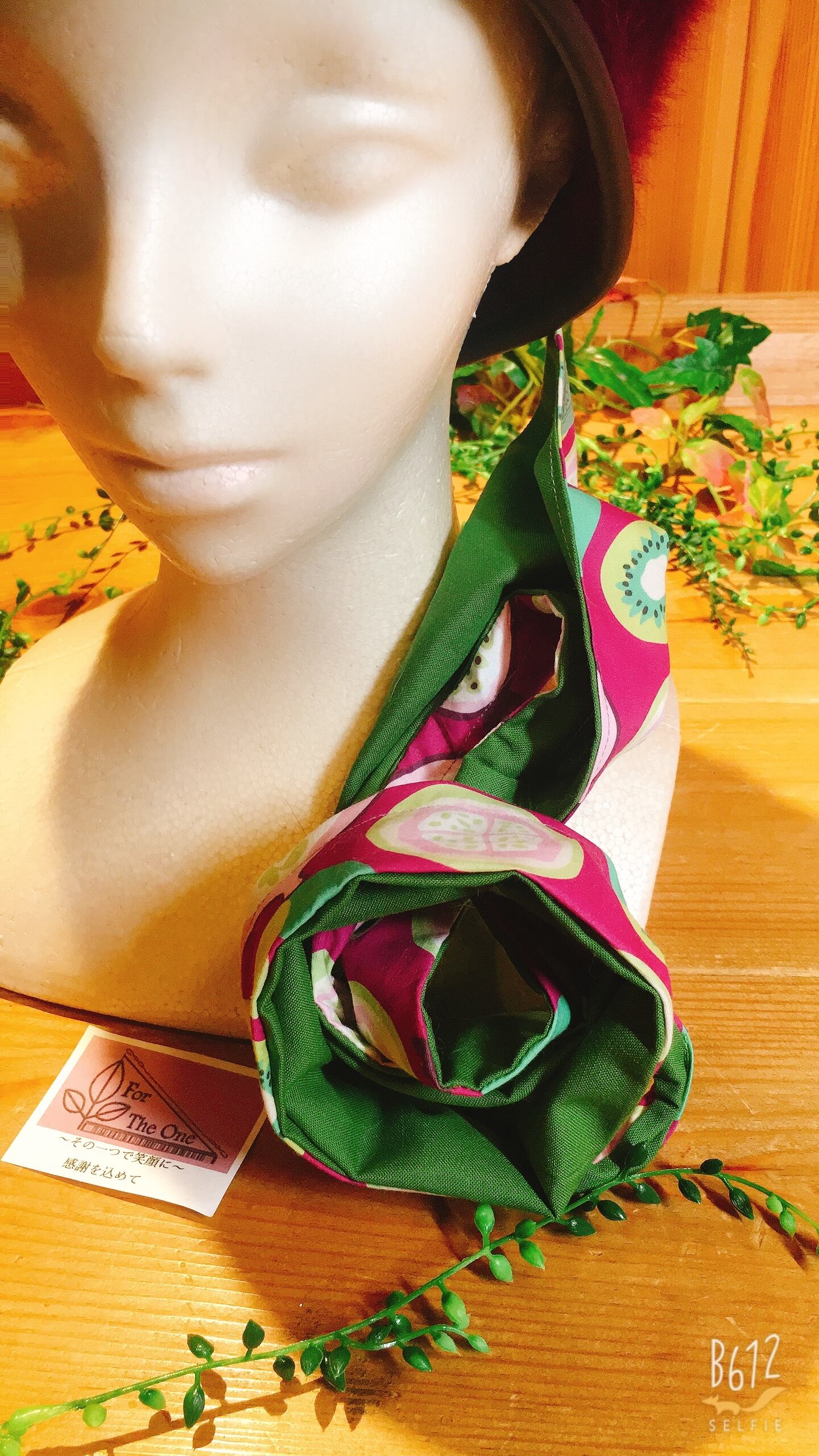 素敵なトロピカルフルーツ柄に、抹茶色を合わせてみました♪抹茶色が、一気に素敵な葉の色に感じて、南国の木のような、明るい雰囲気に仕上がりました(^▽^)/ 本当に素敵ですよ!
